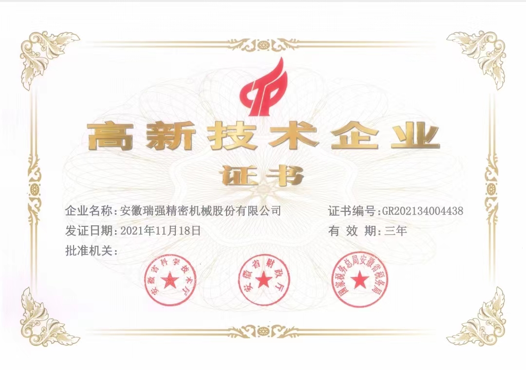 安徽瑞強精密機械股份有限公司,證券代碼:800288 , 2000年8月創(chuàng)立于安徽省蚌埠市高新技術開發(fā)區(qū)工業(yè)園內,是一家集科研,設計,生產,銷售和系統(tǒng)集成為一體的高新技術企業(yè),公司生產面積5000多平方米,標準化廠房,員工80余名,專業(yè)的技術研發(fā)團隊20多人,公司擁有臺灣4軸加工中心,臺灣鉆攻中心,日本三精平面磨,德國微米精密磨刀機,日本二維三維檢測儀,日本進口基恩士VHX-7000N數碼顯微系統(tǒng)等,加工設備與檢測設備120余臺。年產值5千萬元人民幣,憑借在玻璃切割的專業(yè)水平和成熟的技術,依靠科技技術發(fā)展,不斷為國內外合作伙伴提供高質量,高精度,高技術,高品質產品,是我們始終不變的追求。 公司自研品牌“瑞玻爾?”(RUIBOER?)擁有35項國家發(fā)明專利,6項商標注冊信息,國家高新技術企業(yè)認證,科技型中小企業(yè)認證,股交所掛牌企業(yè)等官方認證。